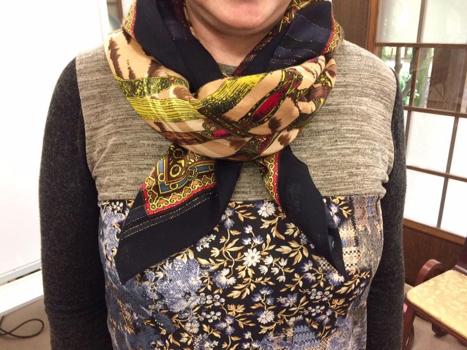 着回しコーデ講座!大判のストールだって自由自在!お気軽にご相談下さい!こちらのHPからメールにて!