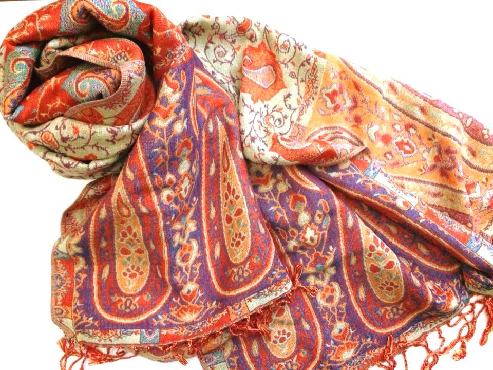 真冬もあったか!華やかなペイズリー柄のストール!暖色系だから、秋冬コーデにも合わせやすいですよ!