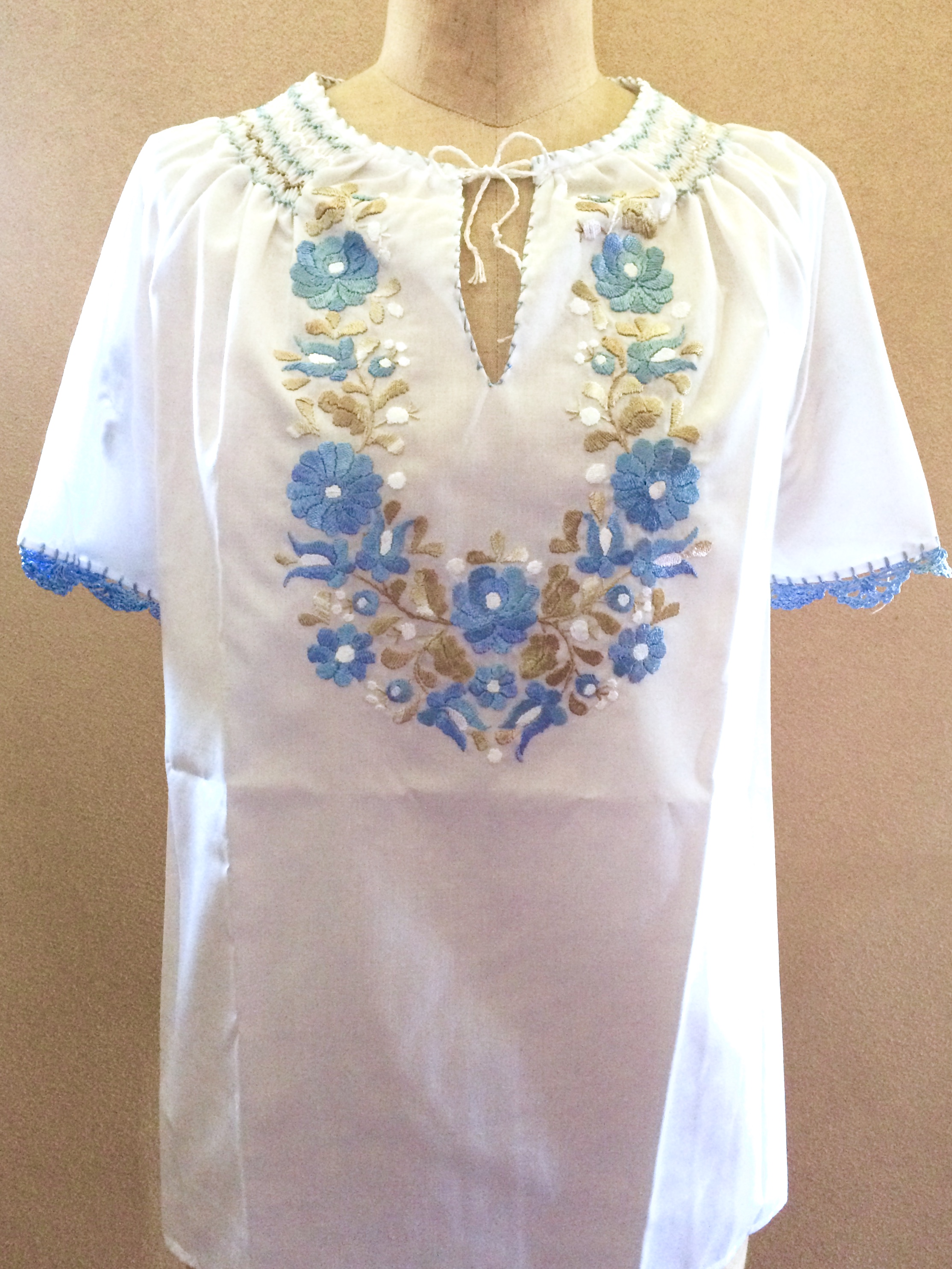 爽やかなハンガリー刺繍のブラウス〜お袖にも刺繍があってオシャレ。縁もレースになっていて上品ですね!2種類あります。詳しくは商品ページへ!